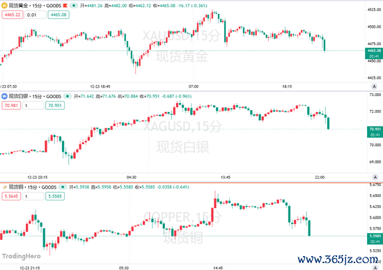 不外,终结漫稿,金银铜价钱均有所回落。海外现货黄金短线跌幅扩大至20好意思元,最低涉及4462.12好意思元/盎司。海外现货白银、纽约期银均跌破71好意思元/盎司。